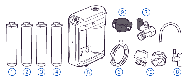 О замене картриджей напомнит звуковая и цветовая индикация ресурса каждого модуля. Встроенный бесшумный насос обеспечивает стабильную работу даже при низком давлении от 0,9 атм.